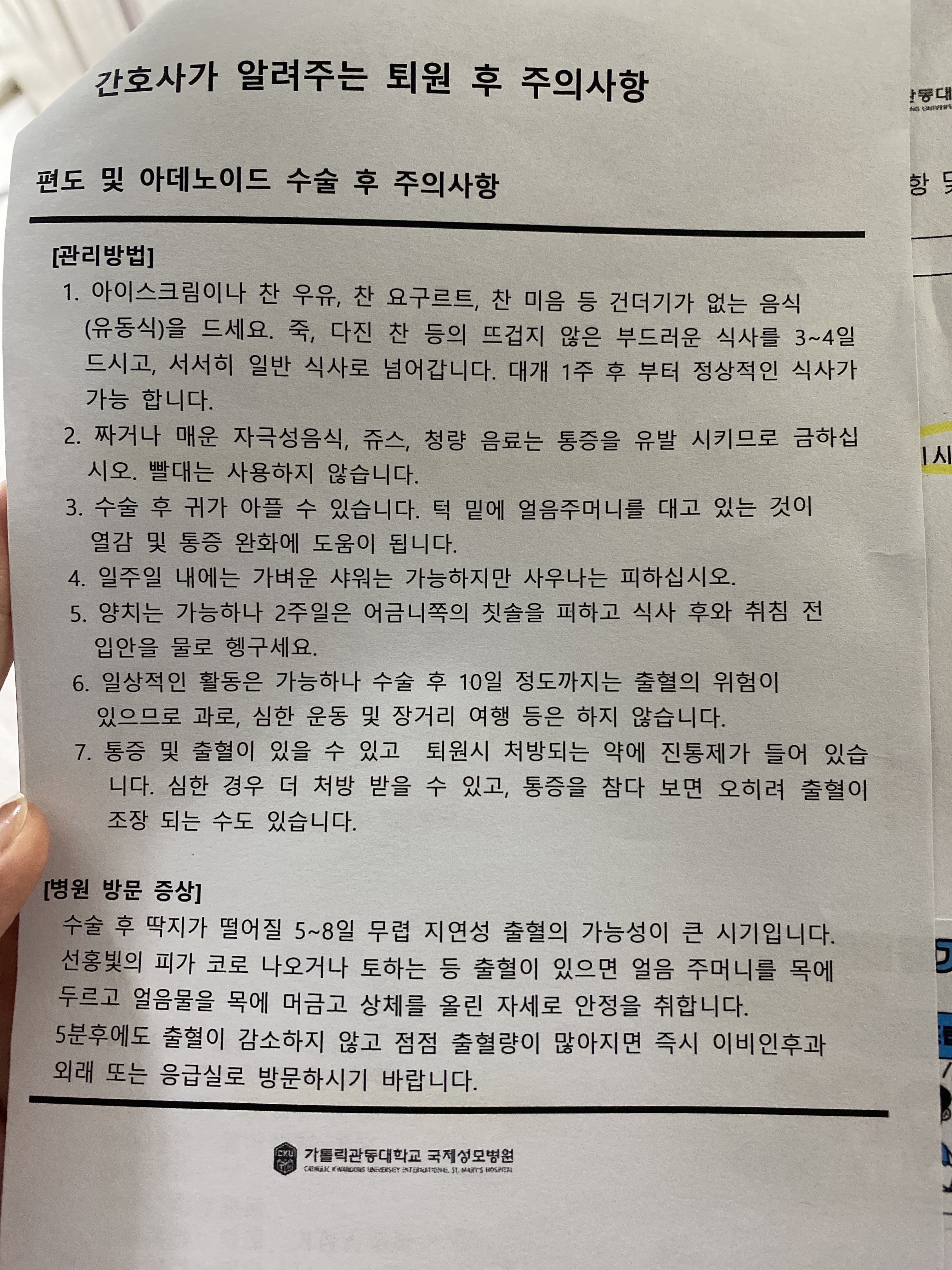 [성인 편도절제수술 후기] 입원 당일~퇴원-인천국제성모병원(수술비용有)